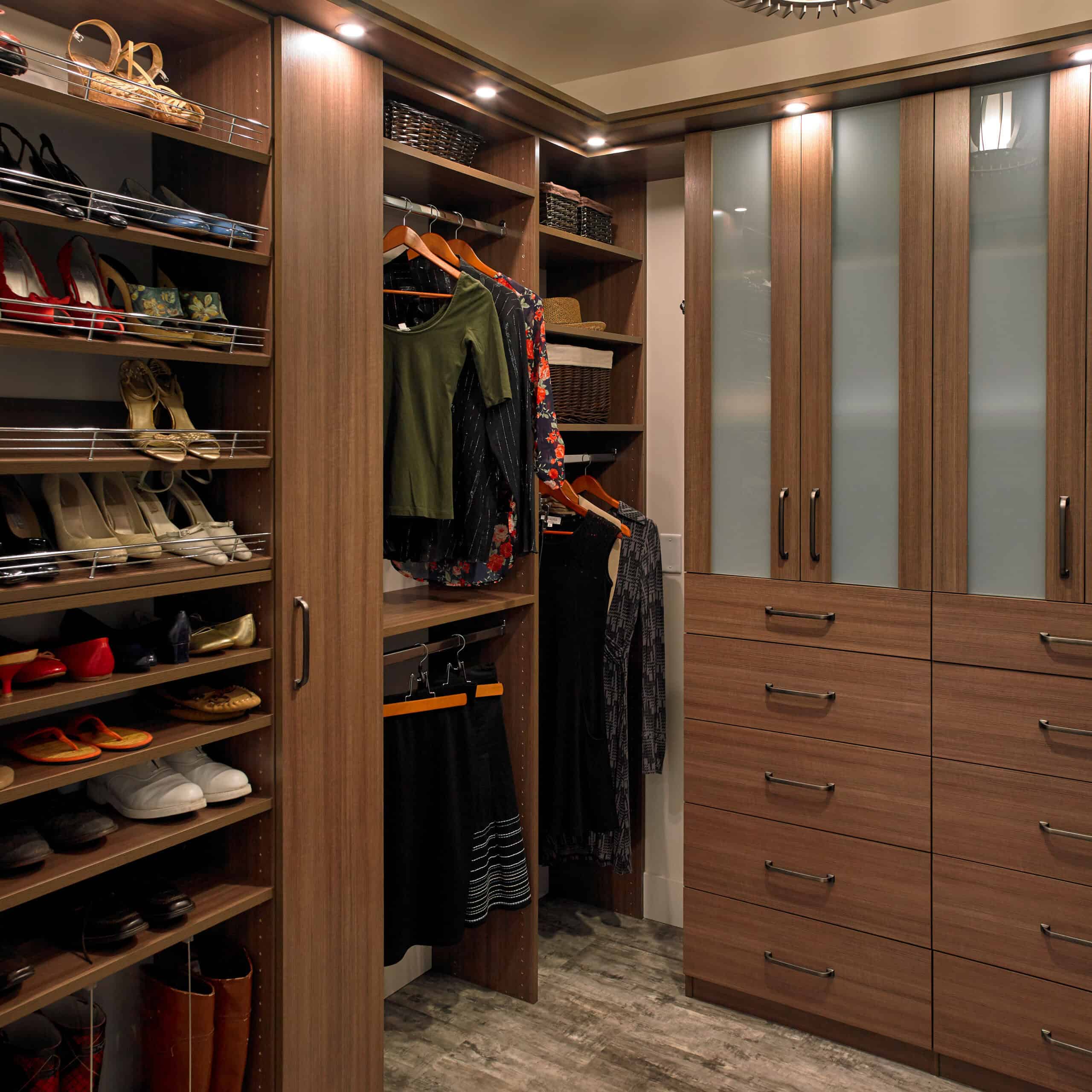 Our unique storage solutions work for all kinds of closets, from custom walk-in and reach-in closets to wardrobes. Some of our most innovative custom designs work magic for entry and children’s closets and can be adapted to change as your needs change over time. In addition to all the different types of organization such as shelving options, hanging options, and drawers we also offer a wide selection of accessories, finishes and hardware to compliment your custom closet.