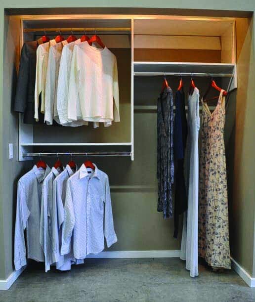 These closets make up most bedroom, entry, linen, and pantry closets. For small or poorly fitted spaces; these closets will become highly practical storage units when properly designed.