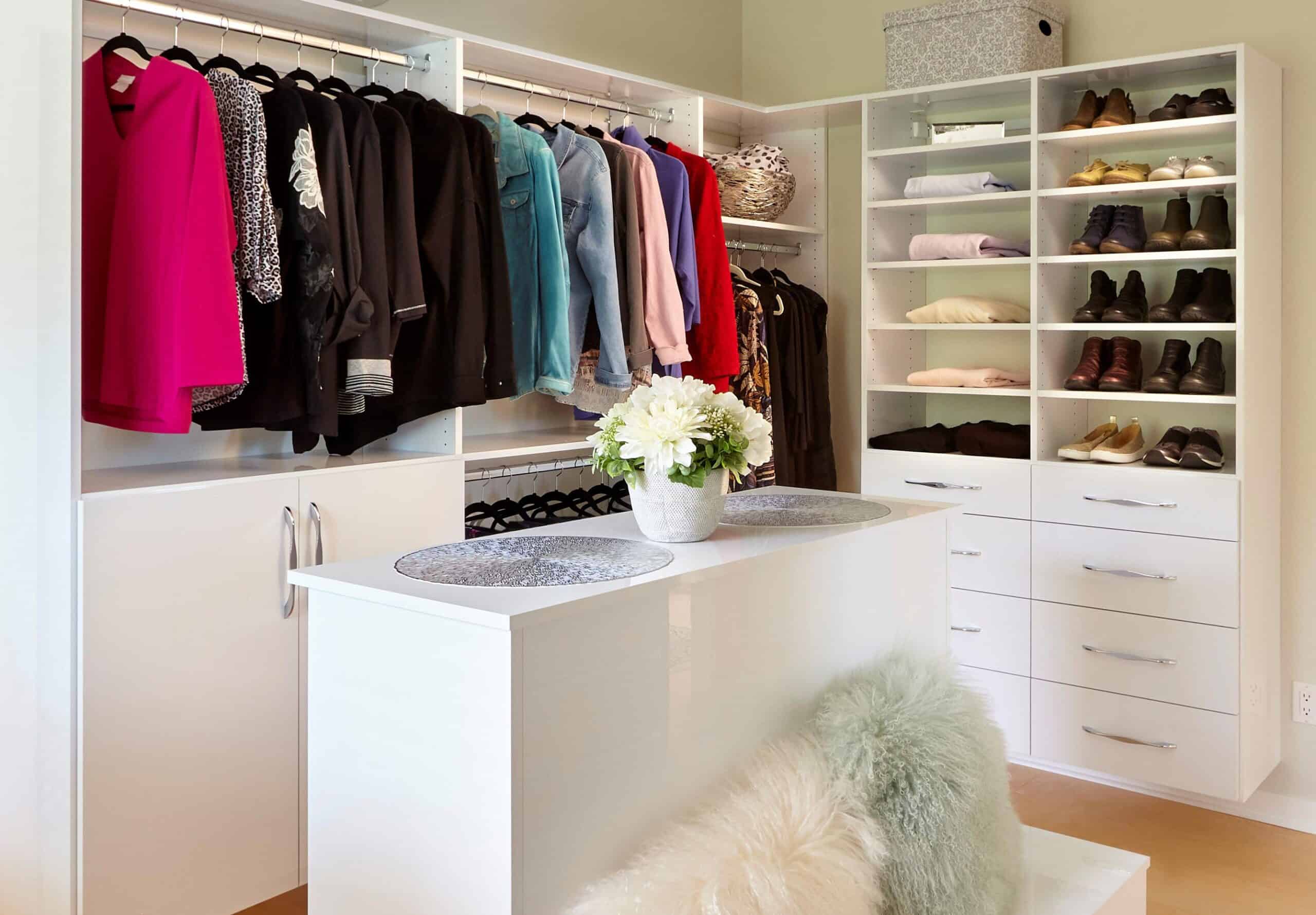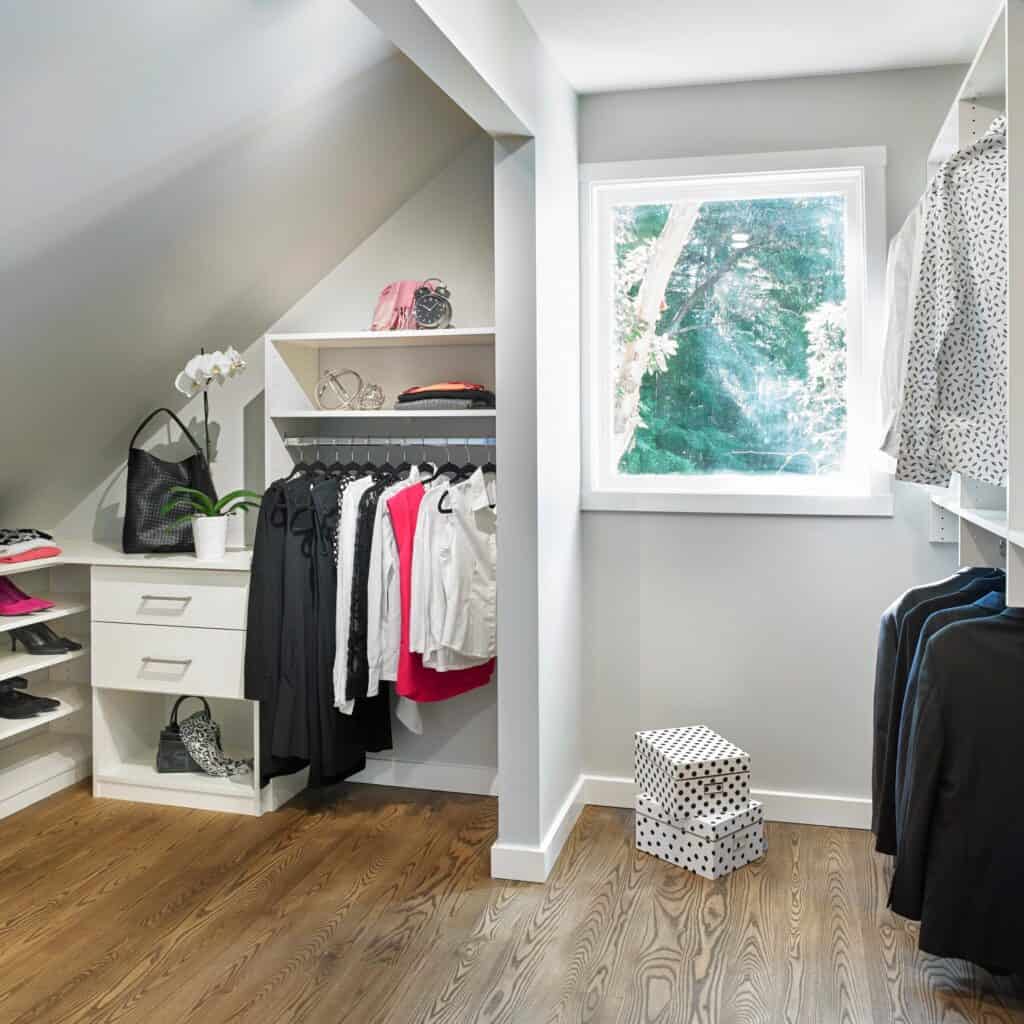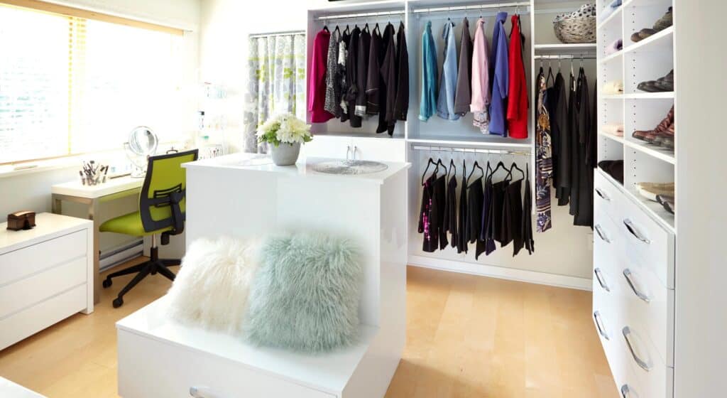 We can work in all types of spaces, but the minimum for a walk-in closet to work best is 7’ wide and 6’ deep. We have been able to transform all sorts of closet spaces from large to small and our designers conduct an in-depth wardrobe analysis to design a closet that fits your needs.