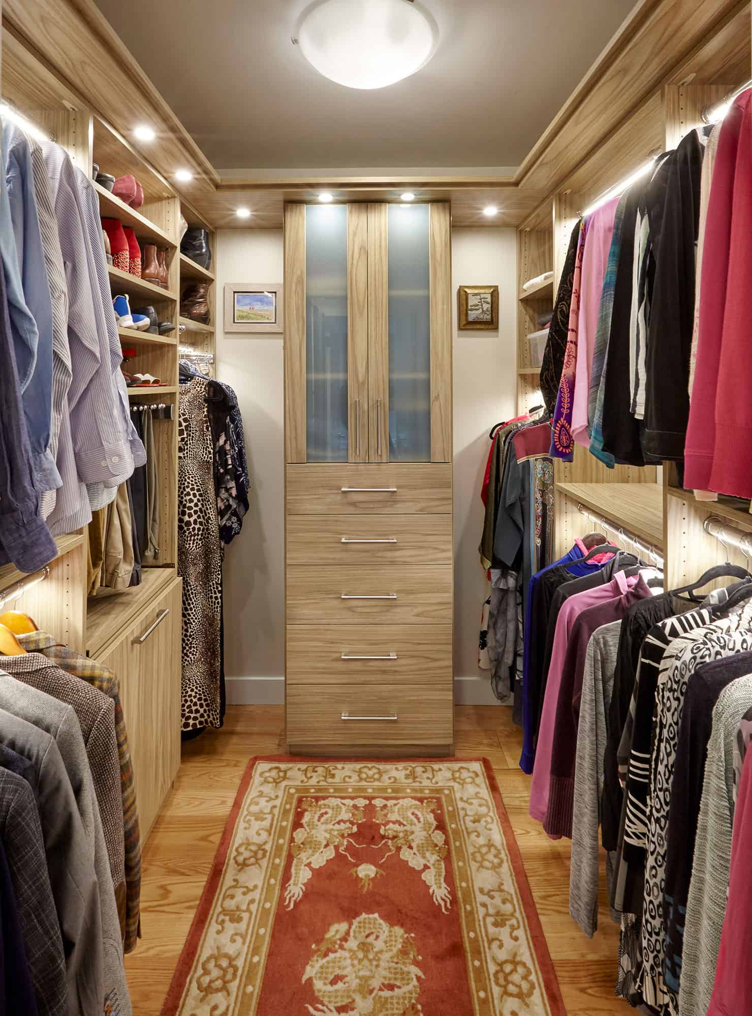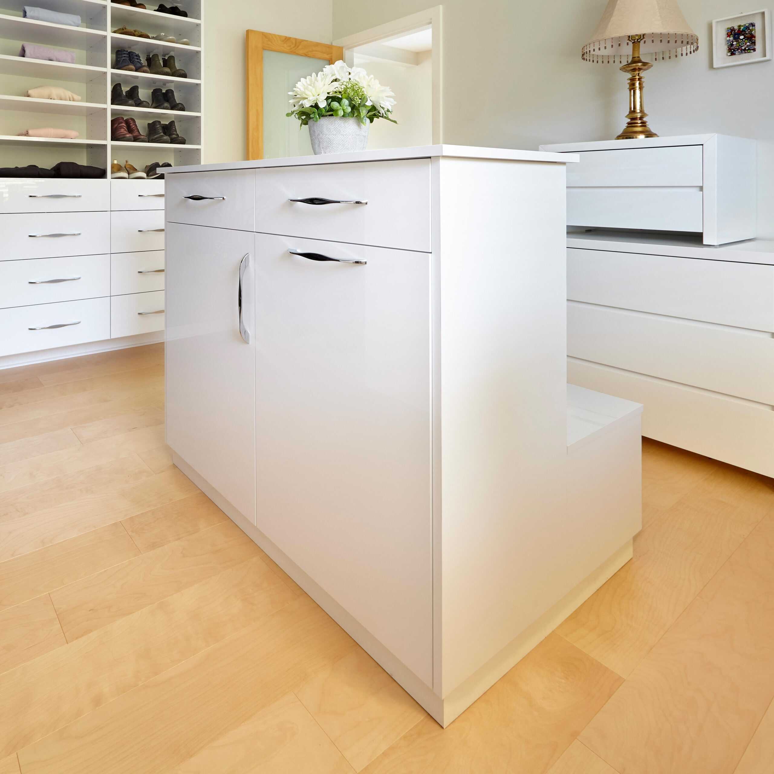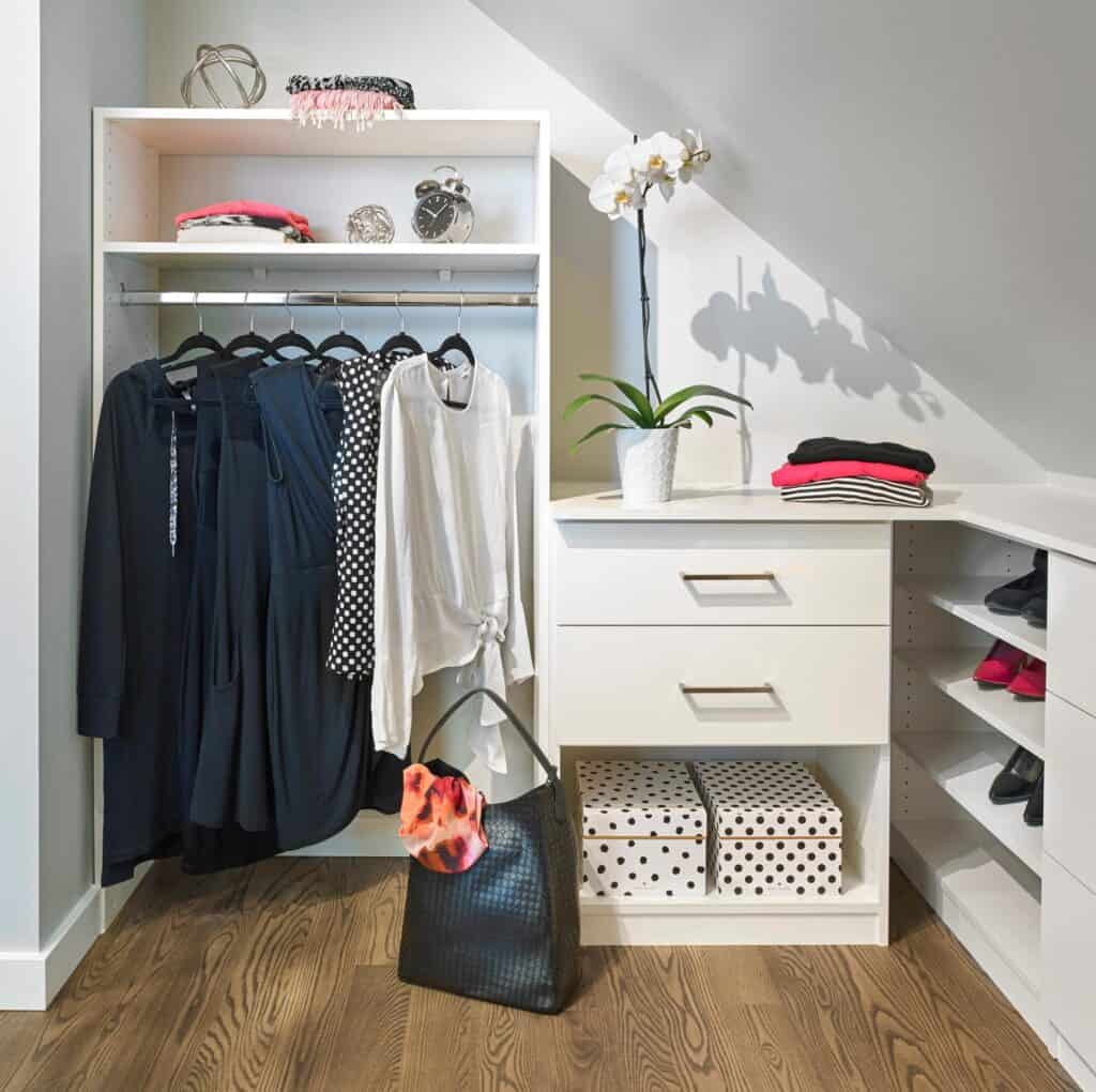 We can work in all types of spaces, but the minimum for a walk-in closet to work best is 7’ wide and 6’ deep. We have been able to transform all sorts of closet spaces from large to small and our designers conduct an in-depth wardrobe analysis to design a closet that fits your needs.