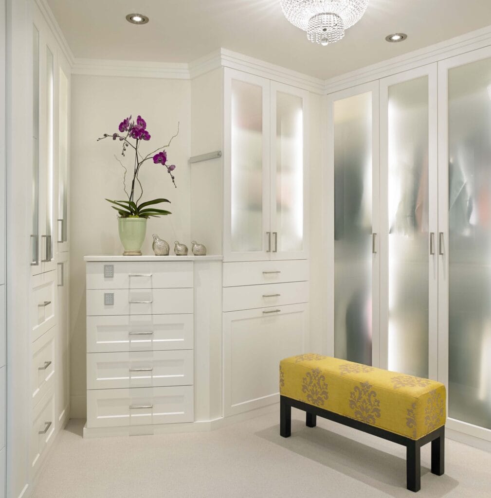 Beautiful birch box drawers that glide on German engineered hardware are one of the options that ensure lifelong use. Wardrobes can also be enhanced with commercial grade LED strip lights, puck lights or in closet rod lighting. These long lasting and eco friendly low energy fixtures add visibility, convenience, and functionality to your wardrobes.