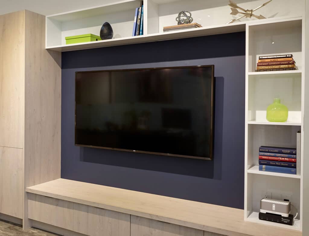 Custom Entertainment Centers – Something that really has the ability to set a space apart is a unique, custom-built entertainment center. When our designers start planning a new entertainment unit, there are a lot of factors they take into consideration before even beginning on the design such as furniture and decor, the colour and type of material of the surrounding cabinets and furniture, the fixtures used throughout the area, closed vs open design…and so much more. Put Incredible Home to work on creating a unique and functional custom entertainment unit that fits both your tastes and the design of your home.