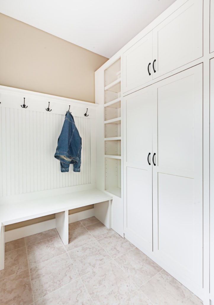 The mud and laundry rooms are two multi-purpose spaces where keeping everything organized and within reach is necessary for function and neatness.