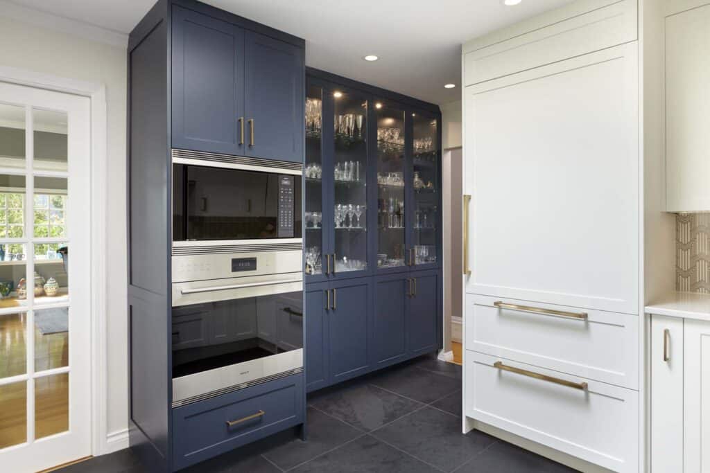 The main difference between big box stores cabinetry and custom cabinetry is in the details. Cabinetry from big box stores come in standard sizing, making it difficult to design for unique spaces, whereas with custom – anything is possible.